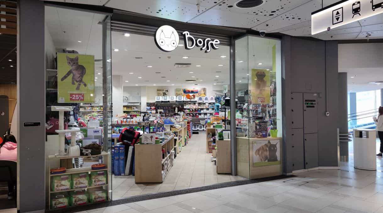 Ülemiste Keskuses asuv Bosse Lemmikloomapood on ideaalne koht, kuhu oma lemmiklooma vajadused viia! Ükskõik, kas otsite toitu, maiustusi, mänguasju, kaelarihmu ja jalutusrihmasid, leiate selle kõik Bosse lemmikloomapoest. Tallinna kesklinnas asuv kauplus on avatud esmaspäevast laupäevani 10-21 ja pühapäeval 10-19.